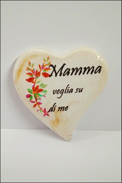 Cuore in Polvere di Ceramica h.7cm con magnete nella parte posteriore. Scritte Personalizzabile